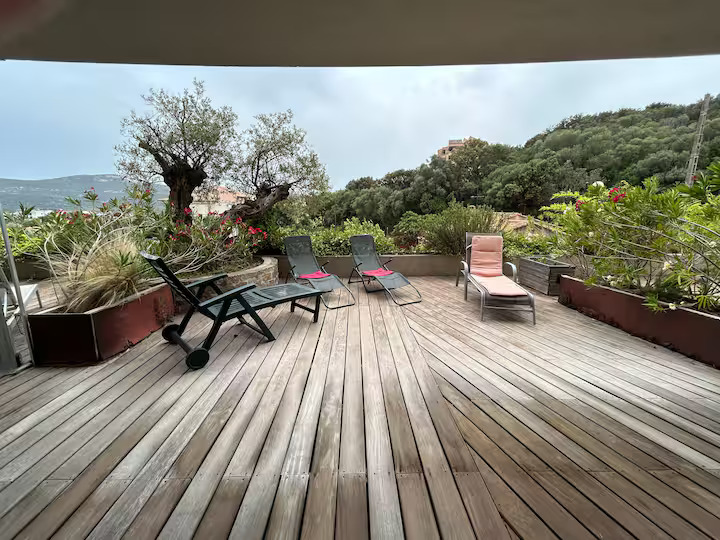 T2 apartment at the foot of the upper town and just a few metres from Porto-Vecchio marina. Located on the first floor of a residence with lift and communal rooftop swimming pool (open from Easter to September). The flat overlooks the Gulf of Porto-Vecchio from its lovely 40 m² ipe shaded terrace in the shade of a hundred-year-old olive tree. Lock-up garage in the basement.