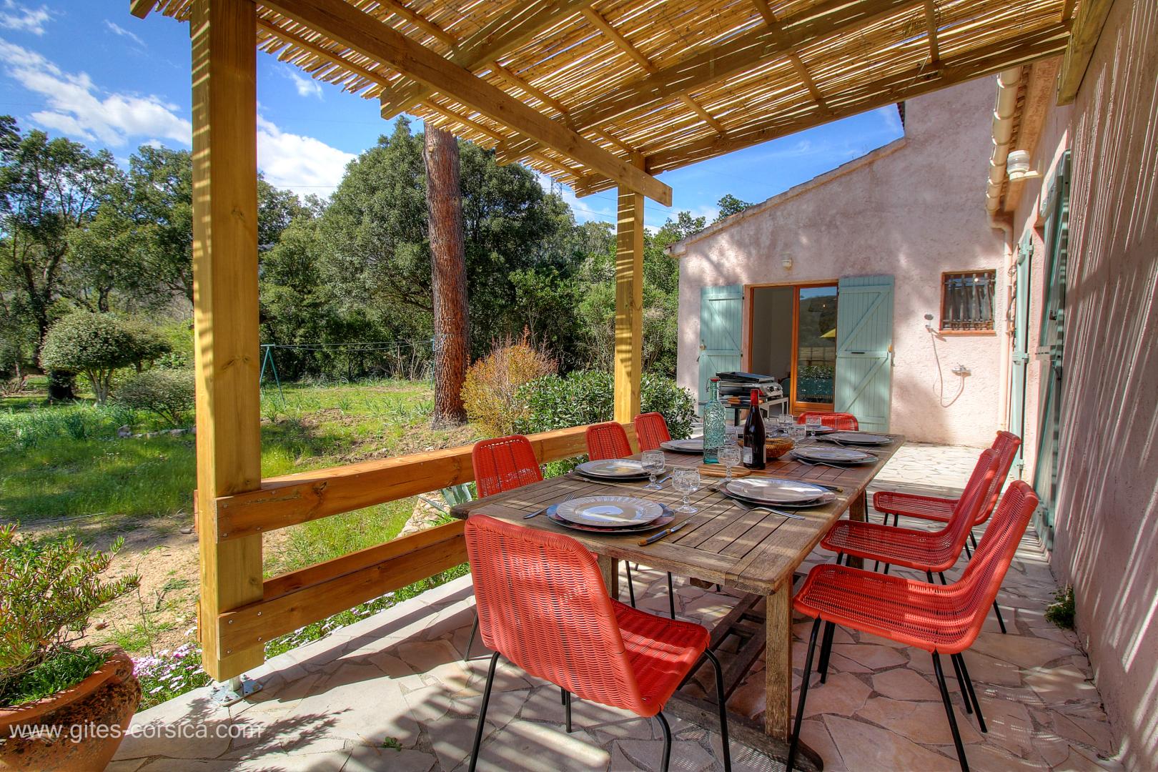 Dans un hameau de 5 maisons isolées, aux portes de Porto-Vecchio, villa de 120 m² située dans une propriété close de 3500m², elle se compose ainsi :