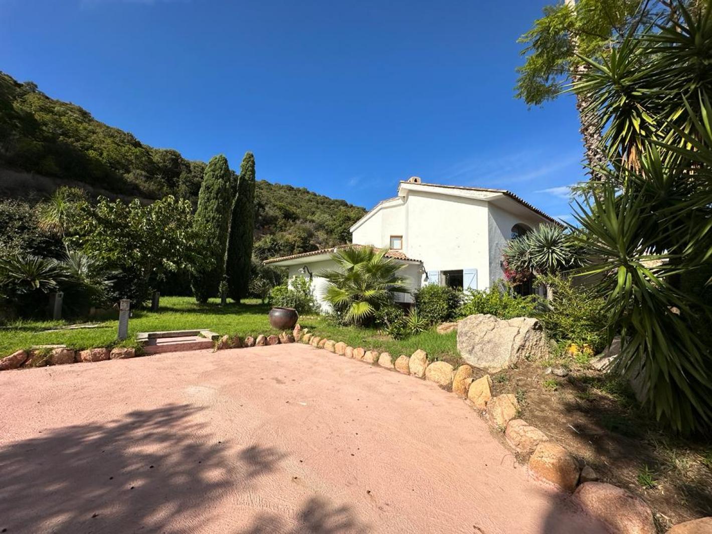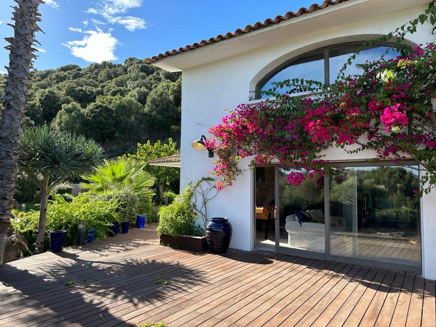 Cette magnifique villa de standing au calme et sans vis-à-vis est située au bout d'une piste en terre sur la célèbre baie de Santa Giulia entourée d'un parc arboré de 6500 m², entièrement clos.